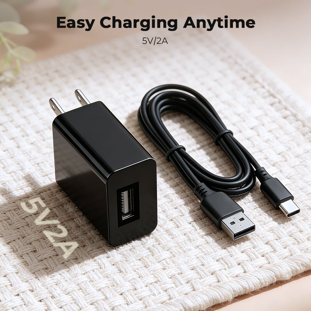Use only the included power adapter (5V/2A or higher). Other adapters or computer USB ports may cause malfunction.