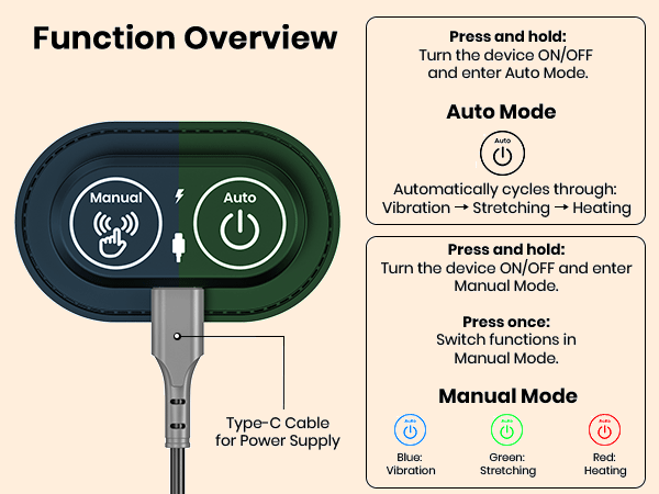 Combines stretching, vibration, and soothing heat to relieve lower back tension. Manual and automatic modes let you easily customize relaxation at home or in the office.