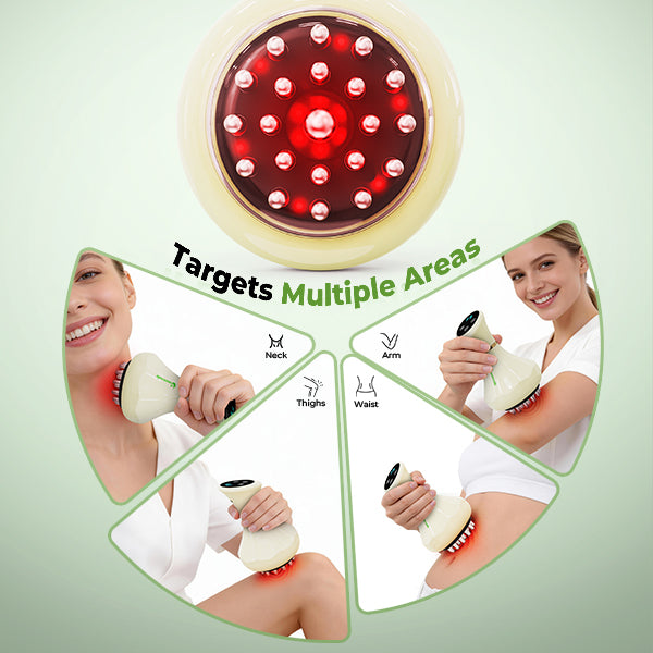 Combines soothing light, heat, and vibration to relax muscles, smooth skin, and refresh multiple body areas including arms, legs, waist, belly, shoulders, and back.