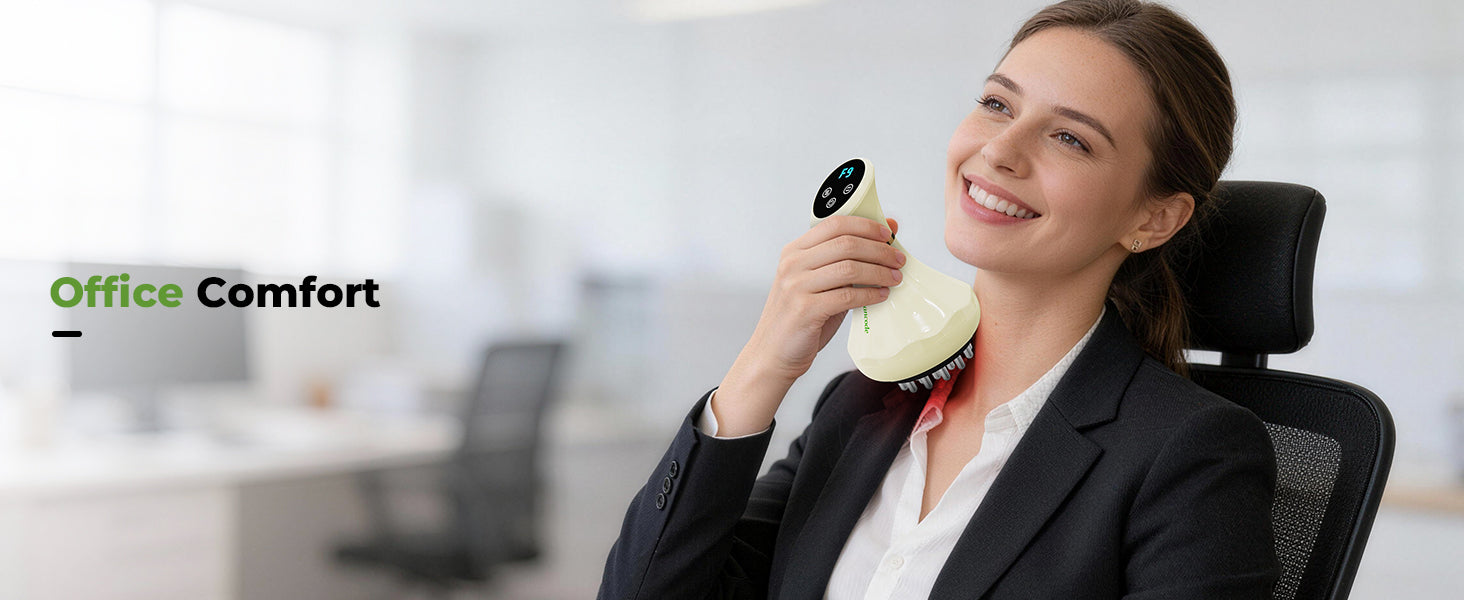 Handheld and easy to use on any body area. Durable, skin-friendly materials make it safe for daily use at home, in the office, or on the go.