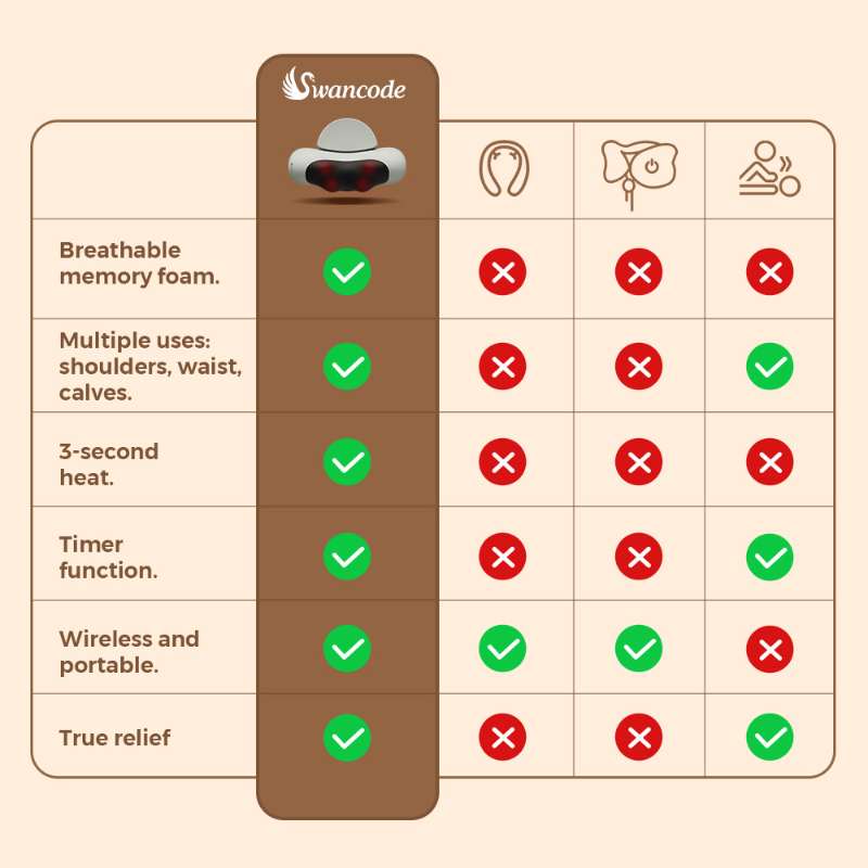 The Swancode NeckRelief Massager offers instant, deep massages anywhere, anytime. No waiting—enjoy 3-second heating and customized relief for neck and shoulder fatigue.